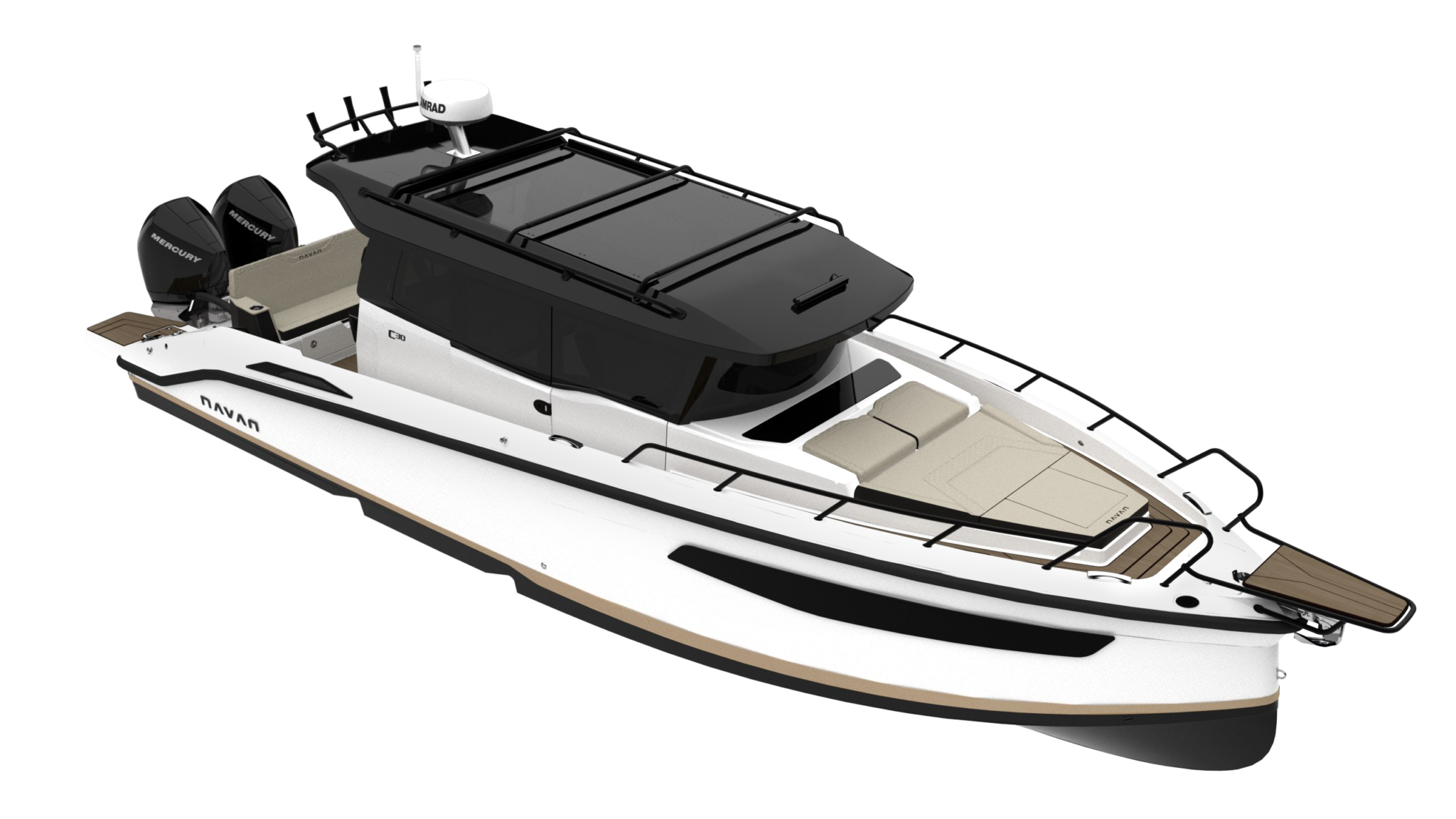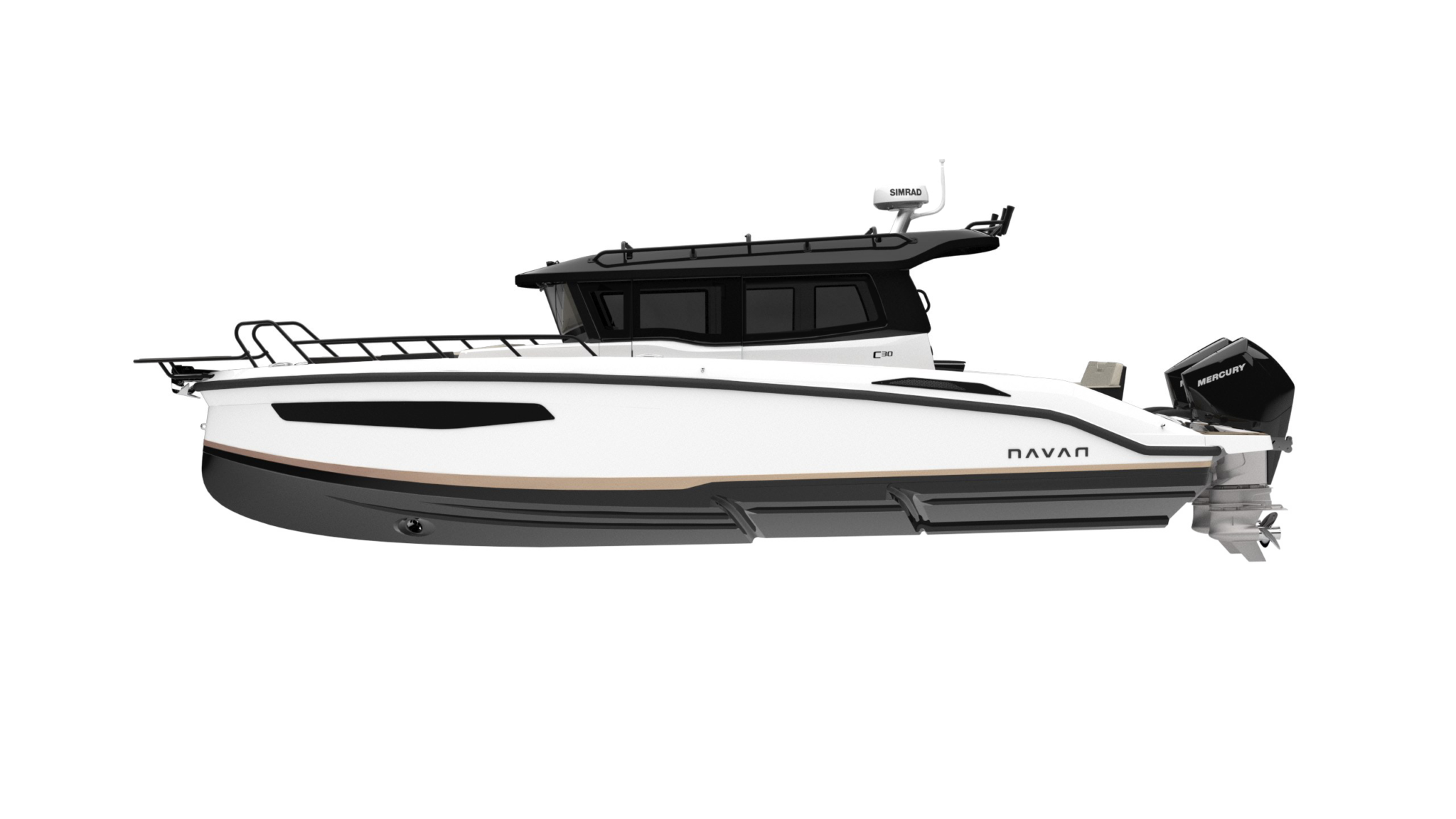 Vodeni sportovi za mlade – i mlade u srcu – ili krstarenje udaljenim obalnim gradom, ili čak vikend pecanje, ovi čamci imaju ono što vam treba. Držači štapova za pecanje, dvostepeni trup koji lomi otpor, i konfiguracije motora u rasponu do dva Mercury motora od 300 KS, postoji samo jedan čamac koji vam je potreban u vašoj floti. Izaberite između otvorenog dizajna kokpita NAVAN S30 sa T-topom koji se može ukloniti i okretnim sedištem u kokpitu i zatvorene kabine na NAVAN C30 sa prozorom koji se otvara na krmi i kliznim vratima.