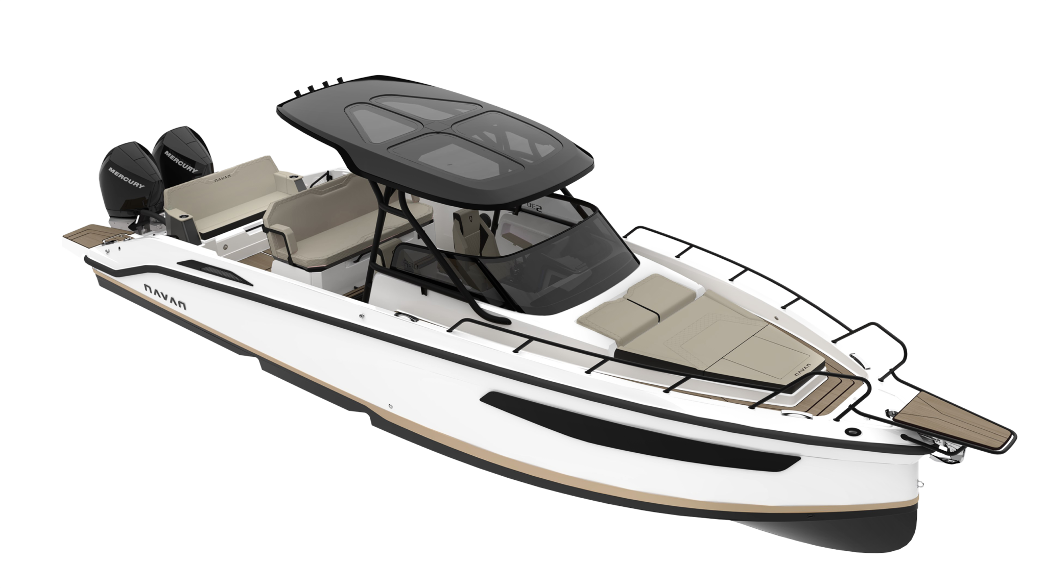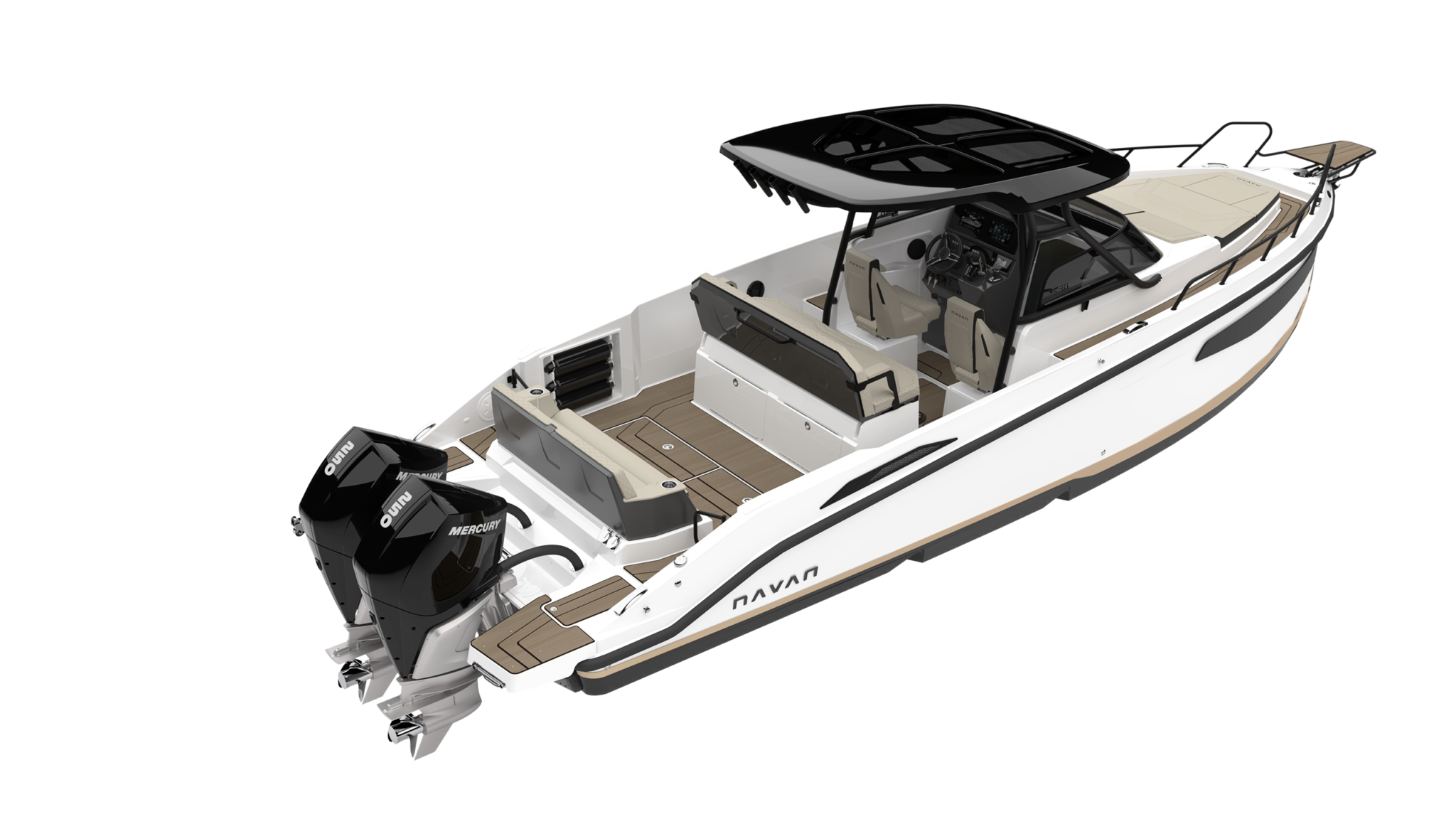 Vodeni sportovi za mlade – i mlade u srcu – ili krstarenje udaljenim obalnim gradom, ili čak vikend pecanje, ovi čamci imaju ono što vam treba. Držači štapova za pecanje, dvostepeni trup koji lomi otpor, i konfiguracije motora u rasponu do dva Mercury motora od 300 KS, postoji samo jedan čamac koji vam je potreban u vašoj floti. Izaberite između otvorenog dizajna kokpita NAVAN S30 sa T-topom koji se može ukloniti i okretnim sedištem u kokpitu i zatvorene kabine na NAVAN C30 sa prozorom koji se otvara na krmi i kliznim vratima.