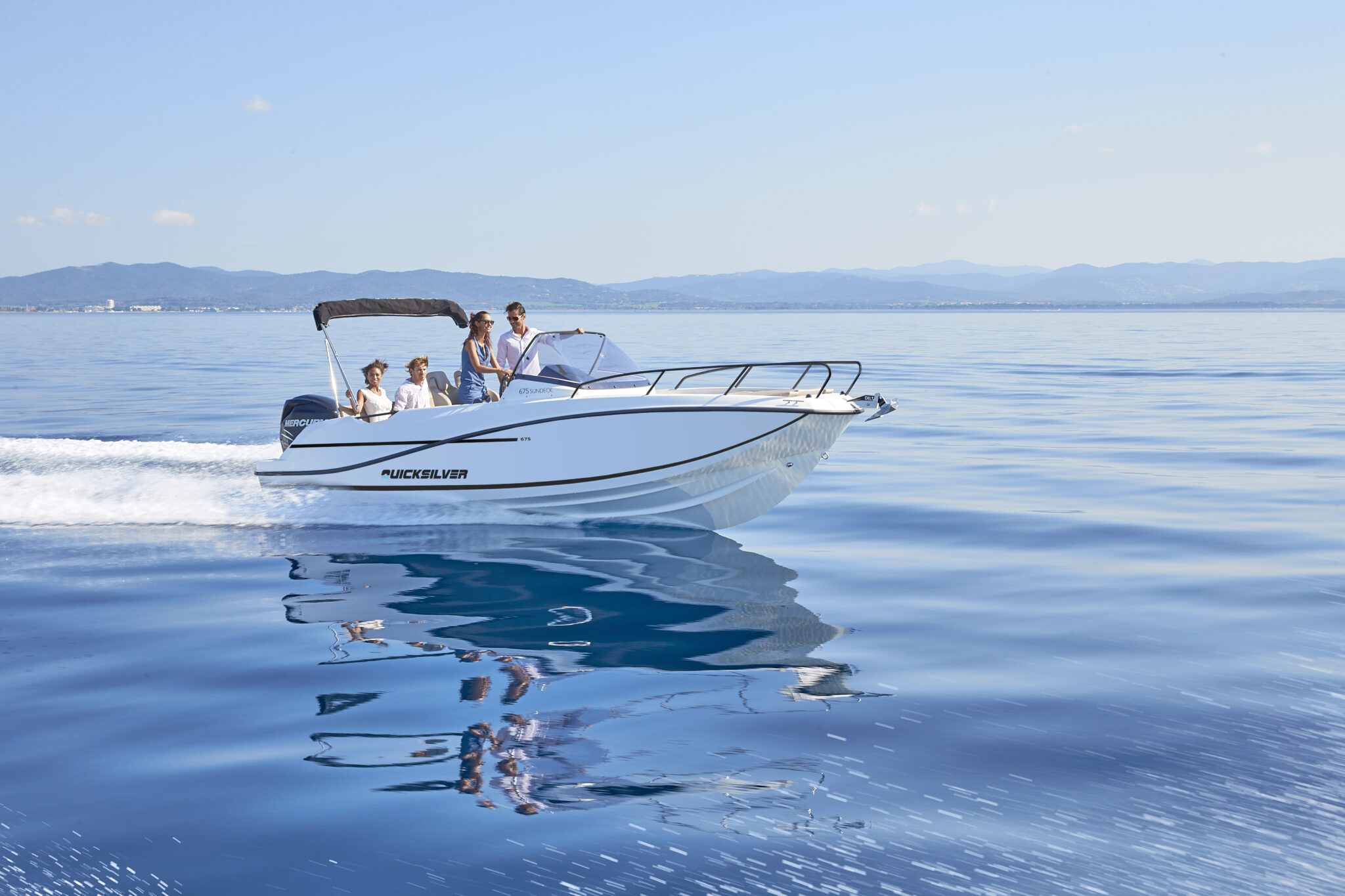 Novi redizajnirani model za 2025. godinu od Quicksilvera- Activ 675 Sundeck! Sportski, prostran i izuzetnog dizajna -Novi Activ 675 Sundeck. Spada u našu kategoriju glisera srednje veličine sa kabinom. Ovaj model će vam omogućiti puno prostora, puno uživanja i puno zabave. Gliser obiiluje luksuznim karakteristikama. Pocnimo od bezbednosti. Bezbednost je naravno najvažnija kod kupovine glisera. Pažljivo pozicionirani rukohvati duž celog glisera, velike merdevine i veliki prostor unutar kabine i izvan kabine. Velika paluba za sunčanje gde ćete uživati i odmarati se. Ne klizajuća podloga i duboko korito čine ga veoma bezbednim. Komfor Prosto ne znamo odakle da pocnemo jer gliser obiluje luksuzom i komforom. Prostrana kabina za 3 osobe, veliki ležaj, frižider, kompletan enterijer od pleksiglasa samo se neke od karakteristika Sundeck-a 675. Na krmi se nalazi ogromni sundeck ( jastuci) na kojima ćete uživati dok talasi zapljuskuju vaš Quicksilver. Kada je u pitanju skladištenje dizajneri su ostavili dosta prostora za vas. Ispod sedišta, u podu i krmi se nalazi veliki broj ormarića i pregrada. Prozori i šiber unutar kabine sa mogućnošću ugradnje klima uređaja. Zadnji deo glisera poseduje veliki prostor za sedenje i uživanje na suncu. A kada poželite da se klonite od sunca možete raširiti tendu koja se sklapa ili rasklapa po potrebi, ili možete jednostavno uživati u kabini na velikom krevetu. U standarnoj opremi takođe se nalazi zadnja platforma oko motora iz koje ćete jednostavnim otvaranjem naslona sedišta pristupiti kokpitu bez preskakanja. Smart craft instrumenti i navigacija će vam omogućiti da se otisnete u ne poznatom pravcu. Gliser se prodaje u nekoliko osnovnih varijanti a vi ga možete obogatiti dodatnom opremom iz našeg kataloga i tako povećati nivo luksuza i uživanja. Activ 675 Sundeck je sjajan izbor za Vas ako volite da se sunčate.