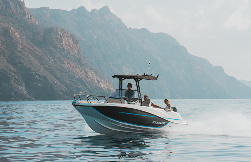 Novi model u ponudi iz Quicksilvera Activ 705 Open - gde se sureću elegancija i avantura!Jednostavan ali upečatljiv Veoma elegantan i odličan izbor za reke ali i za more! Velika pažnja je obraćena na svaki dealj, što se moze primetiti pri prvom ulasku u čamac. Celokupan enterijer je od pleksiglasa a pramcu i krmi se veoma lako pristupa. U kokpitu postoje dva obrtna sedišta za vozača i suvozača. Iza sedišta se nalazi zadnja klupa sa popunjena jastucima koja je namanjana za sportsku ali i laganu vožnju. Gliser je potpuno otvoren i poseduje dosta slobodnog prostora. Velika konzola sa sedištem će Vam omogućiti brzu i sportsku ali i bezbednu vožnju. Ono što posebno karakteriše ovaj model jeste kabina za 2 osobe. Izvanredna kombinacija potpuno otovrenog plovila sa manjom kabinom koja nij uticala na dizajn plovila. Veliki broj pregrada i ormarića omogućiće vam da bezbedno smestite svoje stvari. Na krmi se nalazi sandek na kome se možete sunčati dok vas zapljuskuju talasi. Velika tenda u vidu dodatne opreme će Vam pružiti zaštitu od sunca, a tu je i opcija T-Top tende koja daje dodatni nivo elegancije. Ono što je svakako neobično za ovaj model je prostrana zadnja platforma koja će vam omogućiti nesmetan ulazak i izlazak iz vode ili čamca. Kompletna komandna tabla je popunjena sa različitim komandama i instrumentima najnoveije generacije i konzolnom ručicom. Uz kombinaciju sa Mercury motorom od 150,175,200 ili 225 konjskih snaga dobićete idealnu varijantu za vožnju rekama ali i morima. Novi Activ 705 Open u paketu sa Mercury motorom je pravi je izbor za Vas.