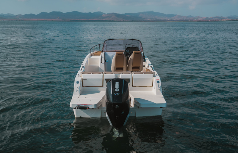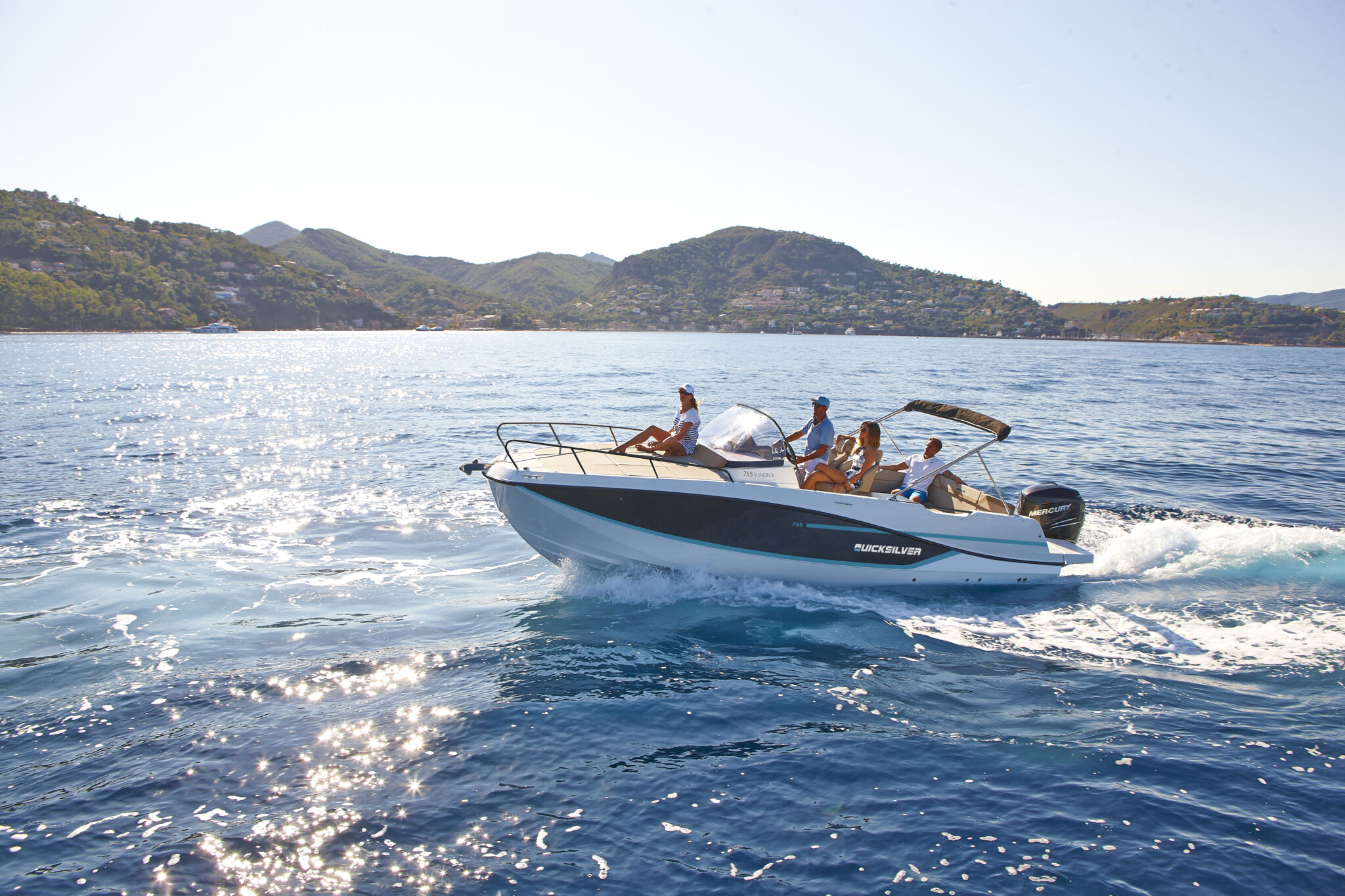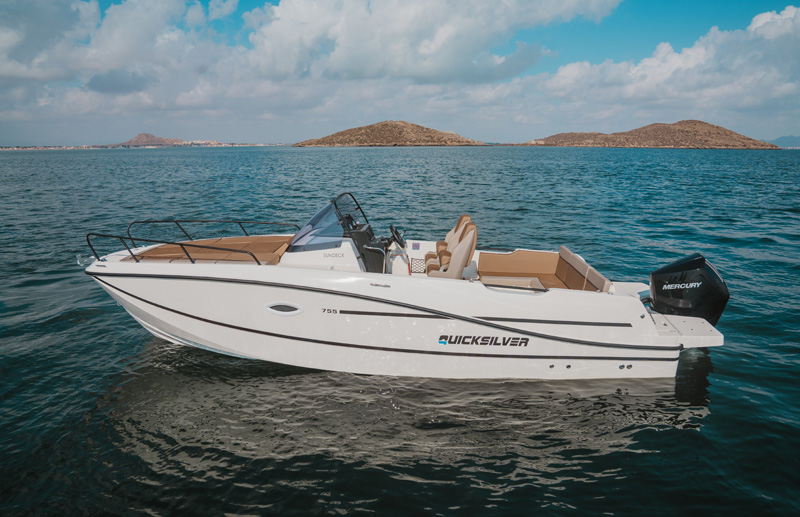 Dobitnik nagrade za čamac godine u svojoj klasi na sajmu u Dizeldorfu 2017 godine. Sportski, prostran i izuzetnog dizajna Activ 755 Sundeck je redizajniran za 2025. godinu! Spda u našu kategoriju velikih glisera sa kabinom. Ovaj model će vam omogućiti puno prostora, puno uživanja i puno zabave. Gliser obiiluje luksuznim karakteristikama. Počnimo od bezbednosti. Bezbednost je naravno najvažnija kod kupovine glisera. Pažljivo pozicionirani rukohvati duž celog glisera, velike merdevine i veliki prostor unutar kabine i izvan kabine. Velika paluba za sunčanje gde ćete uživati i odmarati se. Ne klizajuća podloga i duboko korito čine ga veoma bezbednim. Komfor Prosto ne znamo odakle da počnemo jer gliser obiluje luksuzom i komforom. Prostrana kabina za 3 osobe, zatim toalet, veliki ležaj,frizider, kompletan enterijer od tikovine samo se neke od karakteristika Sundeck-a 755. Na krmi se nalazi ogromni sundeck ( jastuci) na kojima ćete uživati dok talasi zapljuskuju vaš Quicksilver. Kada je u pitanju skladištenje dizajneri su ostavili dosta prostora za vas. Ispod sedišta, u podu i krmi se nalazi veliki broj ormarića i pregrada. Prozori i šiber unutar kabine sa mogućnošću ugradnje klima uređaja. Zadnji deo glisera poseduje veliki prostor za sedenje i uživanje na suncu. A kada poželite da se klonite od sunca možete raširiti tendu koja se sklapa ili rasklapa po potrebi, ili možete jednostavno uživati u kabini na velikom krevetu. Smart craft instrumenti i navigacija će vam omogućiti da se otisnete u ne poznatom pravcu. Gliser se prodaje u nekoliko osnovnih varijanti a vi ga možete obogatiti dodatnom opremom iz našeg kataloga i tako povećati nivo luksuza i uživanja. Activ 755 Sundeck je sjajan izbor za Vas ako volite prostrana i funkcionalna plovila.
