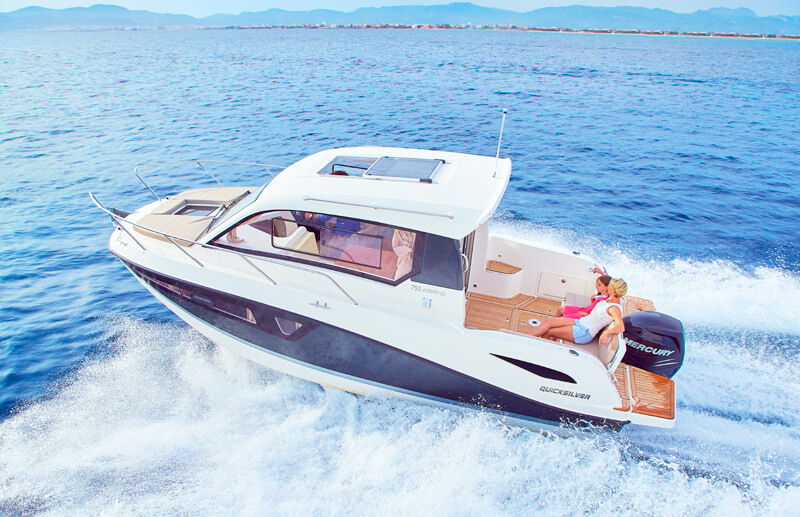 Quicksilver je svoje poverenje poklonio Mercury motorima pa s toga ovaj model možete izabrati u paketu sa četvorotaktnim VERADO motoromI od 200, 225, 250 ili čak 300 konjskih snaga što je svakako naša preporuka a postoji i opcija izbora MerCruiser brodskog motora od 4,5 L u varijanti od 200 ili 250 konjskih snaga ali to nije sve, možete izabrati i Mercury Dizel 2,0 L od 170 konjskih snaga. Ako izaberete Activ 755 Weekend garantujemo Vam luksuz i uživanje.