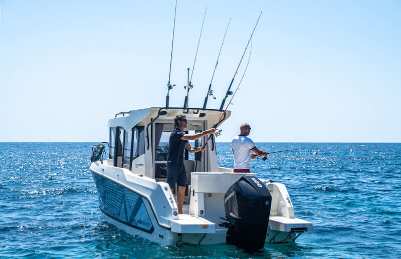 Novi model Pilothouse 705 pomjera standarde Pilothouse serije čamaca. U kombinaciji sa motorom od 200ks sa većom kabinom nego ostali modeli zaista ostavlja bez daha. Detalj koji daje poseban šmek ovom modelu je duplo kormilo sa navigaciom i elektronikom. Jedno se nalazi u kabini a drugo izvan nje. Bezbjednost Visoka i uocljiva signalizaciona svetla,brisači i vetrobranska stakla, merdevine za lak ulazak i izlazak iz vode, servo volan za glatko upravljanje omogućiće vam brzu ali i bezbednu vožnju.Vrata od kabine koja se mogu zatvoriti laganim kliznim poketom i zaključati se.Savrseno izbalansirano korito, velika i uočljiva navigaciona svetla, odlična vidljivost iz kabine od 360 stepeni,vetrobrani,specijalni čekrk za sidrenje samo su neke od performansi ovog čamca. Navigacioni sistem će vas uvek držati na pravom putu a kabina će vam omogućiti da se sklonite od vremenskih neprilika. Komfor Vreme je da pobegnete od svakidašnjih obaveza i opustite se. Ovaj model za to poseduje sve što vam je potrebno. Veliku palubu za sunčanje, zadnji deo za odmaranje i pecanje i prostranu kabinu za 4 osobe. U kabini se pored dva sedišta nalazi i zadnja klupa gde mogu boraviti još 2 osobe. Ležaj u kabini je namenjen za 2 osobe, a postoji i opcija toaleta. Ribolov Pilothouse 705 može biti vaš izbor za ribolov. Poseduje posebne držače za štapove tako da je potrebo samo da se opustite. Plovilo poseduje i posebne pregrade za smeštanje vašeg ulova. Što se tiče prostora za skladištenje, Pilothouse 705 ima mnogo više prostora nego što se očekuje od čamca ove veličine (7 metara). Prostrani kokpit sa dva sedište u zadnjem delu omogućiće vam dosta prostora pri zabacivanju udice. Pilothouse 705 pokreću Mercury vanbrodski motori od 115, 150, 175, 200 ili 225 konjskih snaga , na vama je da odlučite. Veliku prednost predstavlja veliki izbor dodatne opreme iz našeg kataloga poput tende, navigacije , različitih ribarskih paketa opreme, sportske boje korita i tako dalje… Pilothouse 705 je savršen izbor za reku ali i za more.