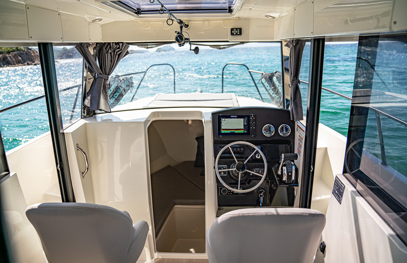 Novi model plovila za 2020 godinu od Quicksilvera je Pilothouse 805, koji svojim dizajnom i performansama pomera standarde Pilothouse serije čamaca. U kombinaciji sa motorom od 300ks sa većom kabinom nego ostali modeli zaista ostavlja bez daha. Detalj koji daje poseban šmek ovom modelu je duplo kormilo sa navigaciom i elektronikom. Jedno se nalazi u kabini a drugo izvan nje. Bezbjednost Visoka i uocljiva signalizaciona svetla,brisači i vetrobranska stakla, merdevine za lak ulazak i izlazak iz vode, servo volan za glatko upravljanje omogućiće vam brzu ali i bezbednu vožnju.Vrata od kabine koja se mogu zatvoriti laganim kliznim poketom i zaključati se.Savrseno izbalansirano korito, velika i uočljiva navigaciona svetla, odlična vidljivost iz kabine od 360 stepeni,vetrobrani,specijalni čekrk za sidrenje samo su neke od performansi ovog čamca. Navigacioni sistem će vas uvek držati na pravom putu a kabina će vam omogućiti da se sklonite od vremenskih neprilika. Komfor Vreme je da pobegnete od svakidasnjih obaveza i opustite se. Ovaj model za to poseduje sve što vam je potrebno. Veliku palubu za sunčanje, zadnji deo za odmaranje i pecanje i prostranu kabinu za 4 osobe. U kabini se nalaze tri sedišta. Ležaj u kabini je namenjen za 2 osobe, a postoji i opcija toaleta. Ribolov Pilothouse 805 može biti vaš izbor za ribolov. Poseduje posebne držače za štapove tako da je potrebo samo da se opustite. Plovilo poseduje i posebne pregrade za smeštanje vašeg ulova kao i prostor za pripremu ulova za jelo. Što se tiče prostora za skladištenje, veliki broj pregrada i ormarića će vam omogućiti da smestite svoje stvari a prostrani kokpit sa dva sedište u zadnjem delu omogućiće vam dosta prostora pri zabacivanju udice. Pilothouse 805 pokreću Mercury vanbrodski motori u duploj instalaciji 2 motora od 150ks ili singla istlaciji motora 225 ,250, 300 ili čak 350 konjskih snaga , na vama je da odlučite. Veliku prednost predstavlja veliki izbor dodatne opreme iz našeg kataloga poput tende, navigacije , različitih ribarskih paketa opreme, sportske boje korita … Pilothouse 805 je savršen izbor za reku ali i za more.